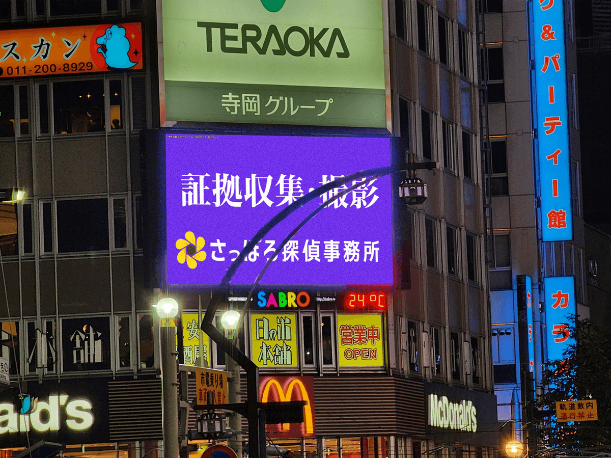場所:すすきの交差点、マクドナルド様のあるビル壁面